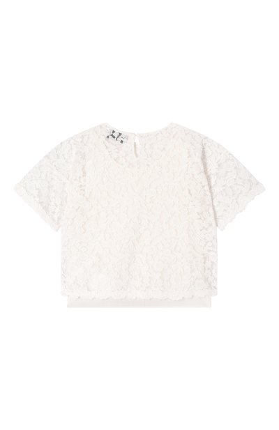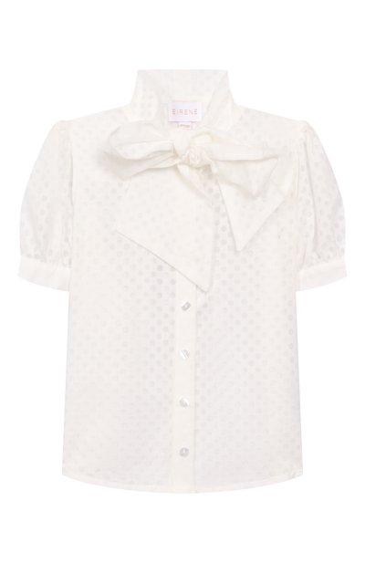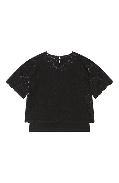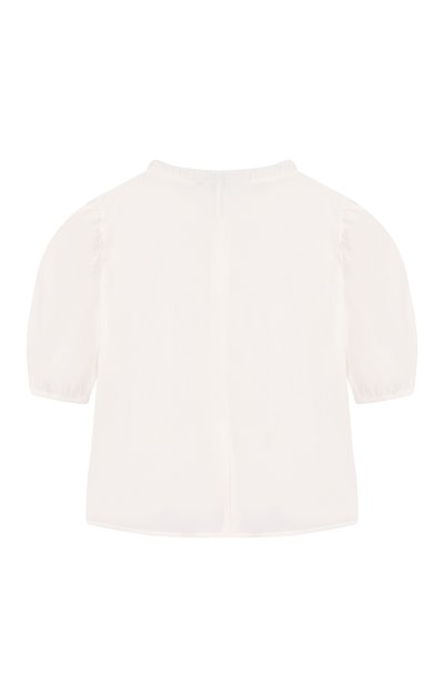 Блузка с рукавами-фонариками и удлиненной спинкой сшита из микса модала и полиэстера, а круглый вырез отделан гофрированной оборкой. Модель свободного кроя застегивается брендированными перламутровыми пуговицами.