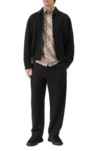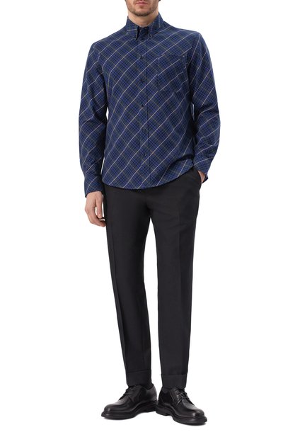 Рубашку с фигурным низом выполнили из хлопкового твила с принтом Burberry Check. Накладной нагрудный карман украсили вышитым щитом с литерой B.