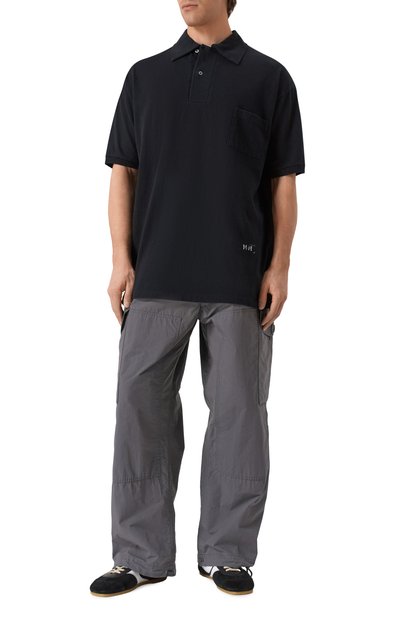 Поло свободного кроя и со спущенной линией плеч выполнили из хлопкового пике. Спереди изделие украсили вышивкой BB Garderobe.