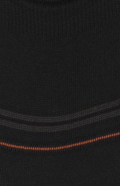 Для изготовления носков с эластичной вставкой на пятке выбрали трикотаж из мерсеризованного хлопка и полиамида. Мыс подчеркнули контрастным плоским швом и фирменной полоской Zegna 232 Road Brand Mark.