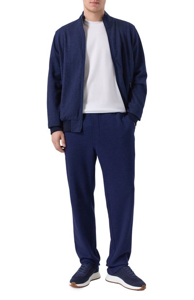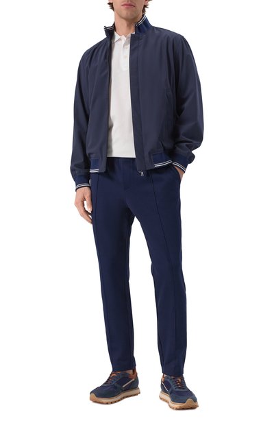 Зауженные брюки с защипами спереди сшили из стрейчевого хлопкового вельвета с добавлением шелка. Модель с внутренней кулиской на поясе дополнили боковыми карманами и прорезными задними. В комплекте – фирменный брелок с маской Пульчинеллы.