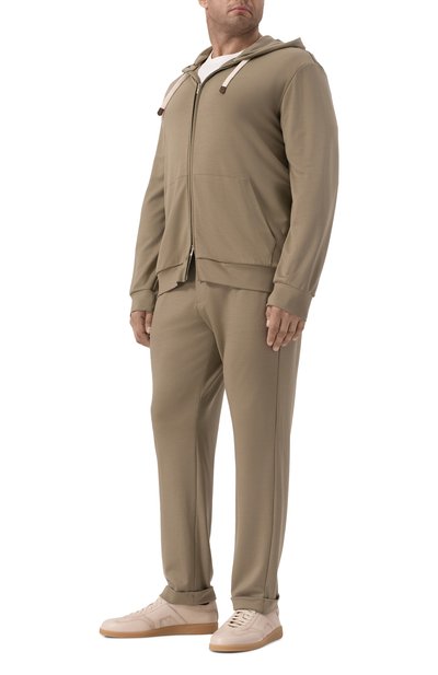 Брюки Tor с эластичным поясом-кулиской и отворотами выполнили из шерстяной ткани. Модель дополнили боковыми карманами, задними на молнии и парой карго с клапанами. В комплекте — фирменный брелок.