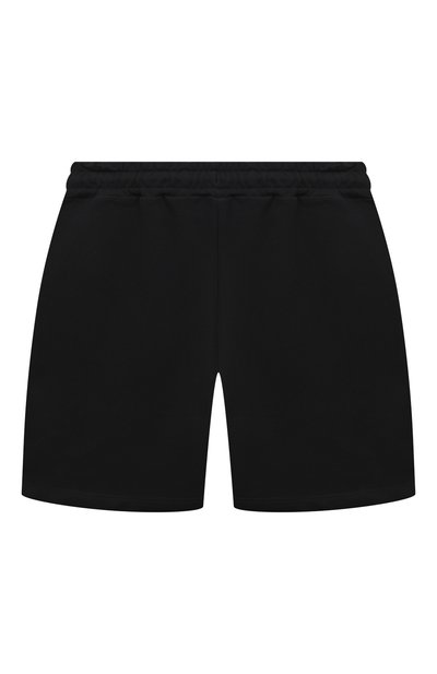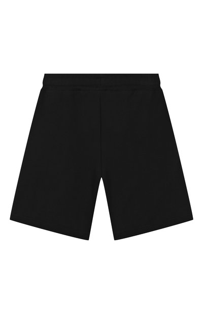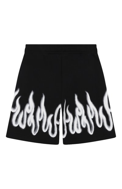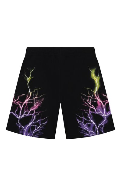 Для пошива шортов с поясом-кулиской и боковыми карманами использовали мягкий хлопковый футер. Модель украсили контрастным логотипом и фирменным принтом в виде контрастных молний.