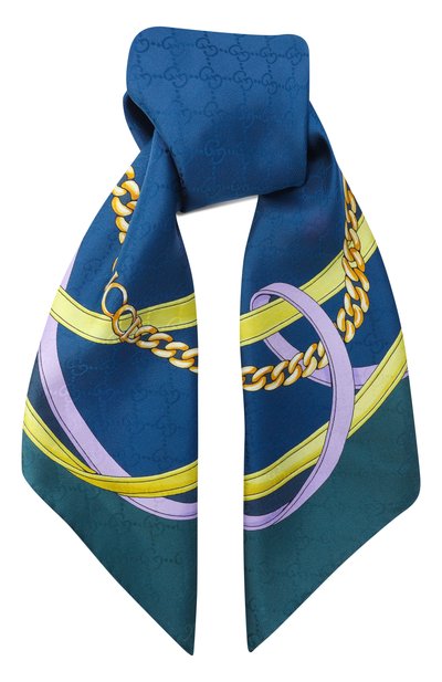 Платок с фотопринтом в виде городского пейзажа поможет создать акцент в образе. Аксессуар с логотипом марки в углу выполнили из вискозного твила.