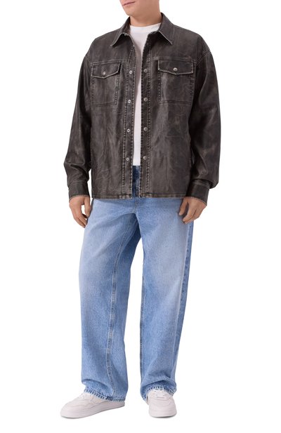 Куртка-рубашка с четырьмя карманами сшита из замши с финишной влагоотталкивающей обработкой nappalan. Модель, застегивающаяся пуговицами, украшена металлическим логотипом сзади.