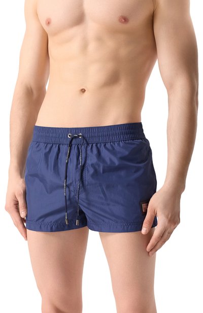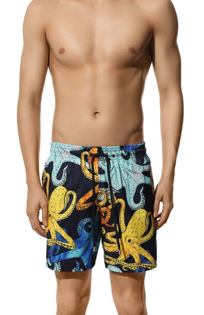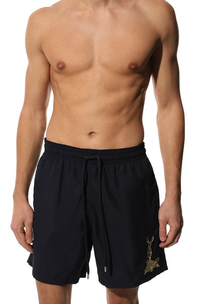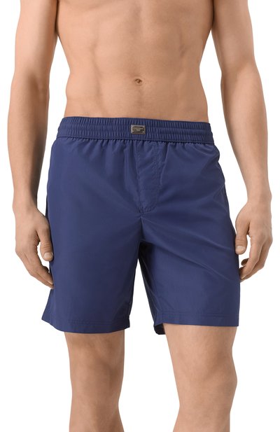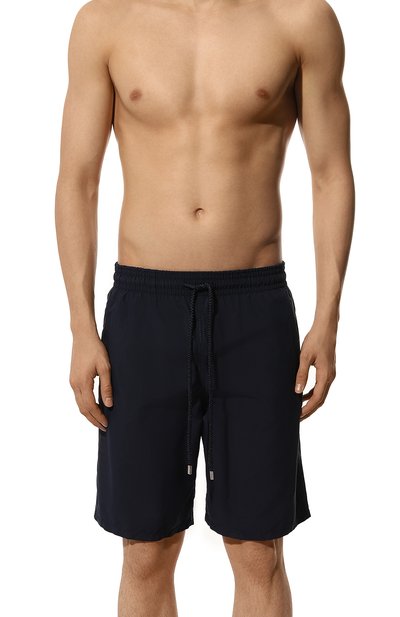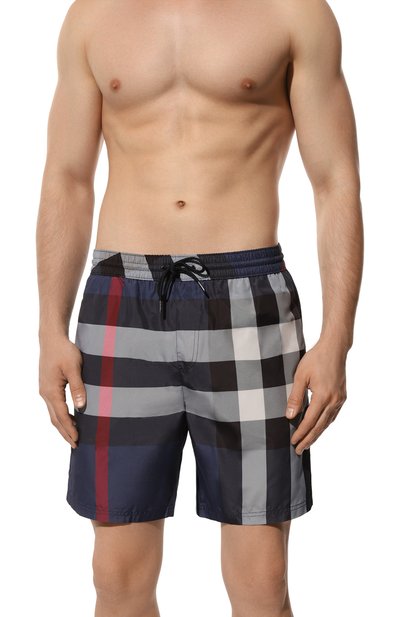 Плавки-шорты с двумя боковыми и задним карманами выполнили из быстросохнущего полиэстера в знаковую клетку. Посадка модели регулируется шнуром, продетым в широкий пояс-кулиску.