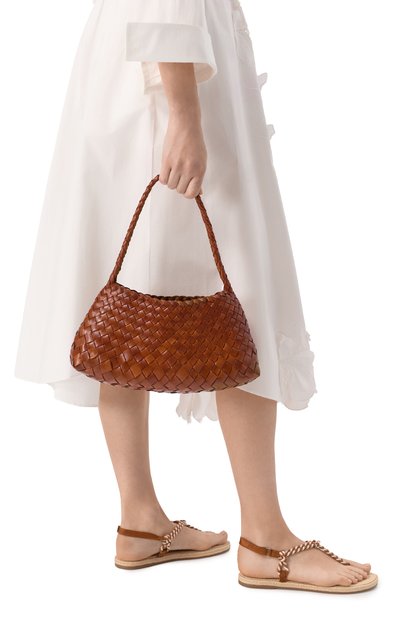 Для изготовления плетеной сумки Rosanna использовали буйволиную кожу оттенка Ocean. Аксессуар с удлиненной ручкой дополнили внутри фирменным медальоном с изображением Святого Христофора.