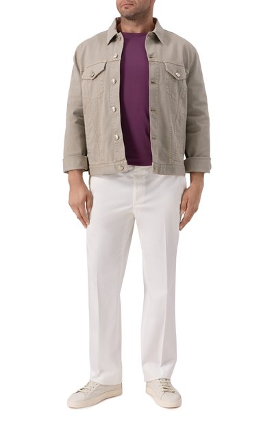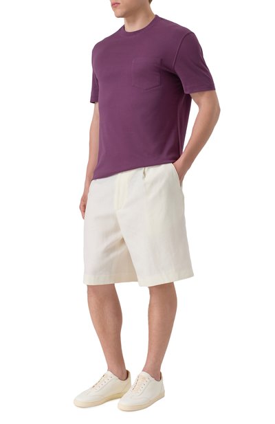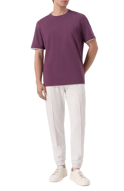 Футболку прямого кроя украсили небольшой эмблемой Solomeo. Модель с короткими разрезами по бокам выполнили из хлопкового джерси.