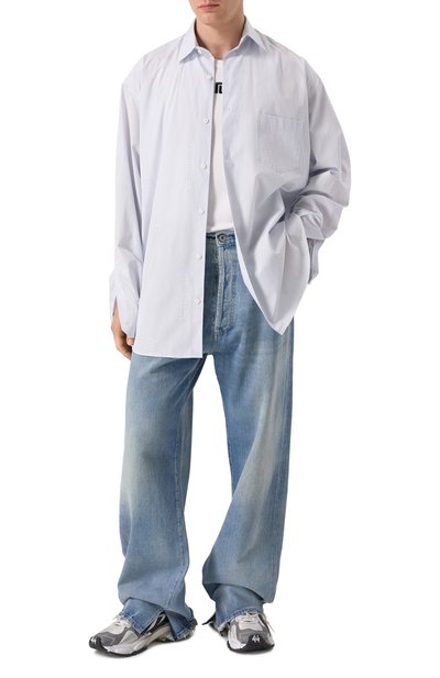 Рубашку силуэта oversize и со спущенной линией плеч выполнили из хлопка. Модель станет основой и офисных образов, и повседневных комплектов, например, с клетчатым жакетом, расслабленными джинсами.