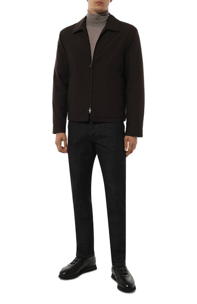 Кроссовки Outline из трикотажа с узорами разной плотности укрепили накладками из телячьей кожи. Модель на легкой подошве Vibram с глубоким протектором украсили брендированной накладкой сбоку. Одну из двух петель выполнили из ленты с полосками в фирменных оттенках.