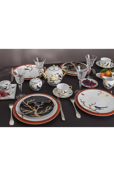 Сложный орнамент на чаше Arcadia мастерски передает красоту арочных окон старинной мануфактуры Baccarat. Палитра узора вдохновлена переливами хрусталя фирменного оттенка Rouge. Белоснежный лиможский фарфор, из которого выполнена посуда, усиливает яркость цвета и делает мотив еще более выразительным.