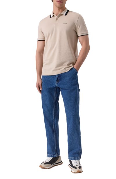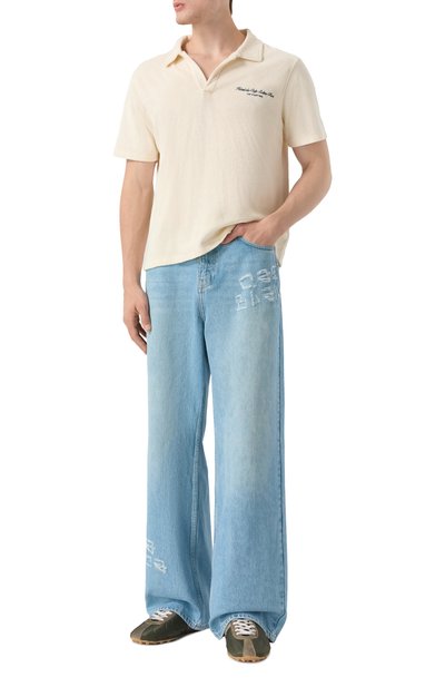 Поло Desertcollar с двумя пуговицами сшили из хлопкового пике. Модель с абстрактным жаккардовым узором на воротнике украсили спереди небольшим вышитым логотипом в тон.