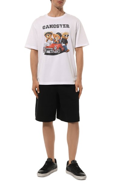 Футболку Dugie украсили ярким изображением собак с надписью Big dog mindset спереди, а также текстовым принтом сзади. Модель со спущенной линией плеч сшили из органического хлопка джерси.