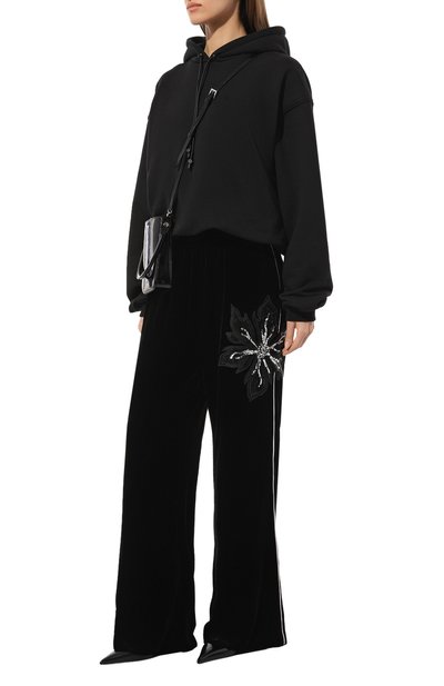 Брюки из трикотажа френч терри на основе органического хлопка дополнили боковыми карманами, разместив под левым брендированный ярлык. Посадка модели регулируется поясом-кулиской с кристальным шнуром.