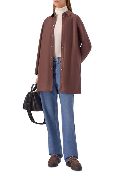 Удлиненная рубашка свободного кроя выполнена из дышащей ткани рами. Модель с широкой кокеткой, бантовой складкой и увеличенными манжетами застегивается пуговицами в тон.
