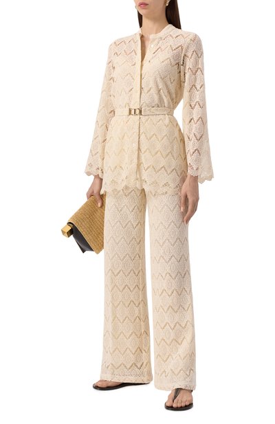 Брюки Polina сшили из хлопкового твила с добавлением лиоцелла. Ш ирокую модель с двумя боковыми и парой задних карманов дополнили четырьмя карго с фигурными клапанами.