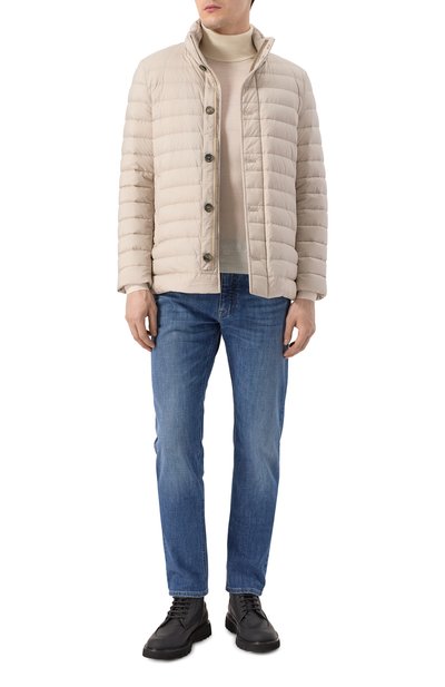 Стеганая куртка-рубашка на кнопках сшита из хлопка. Модель с отложным воротником и закругленной нижней кромкой дополнена врезными боковыми карманами, брендированным нагрудным и внутренним на молнии.
