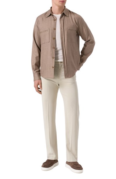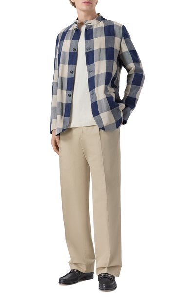 Брюки из эластичного хлопкового габардина дополнили боковыми и задними прорезными карманами. Модель с фирменным патчем на поясе украсили брендированным ярлыком и вышитым логотипом на шлевке спереди.