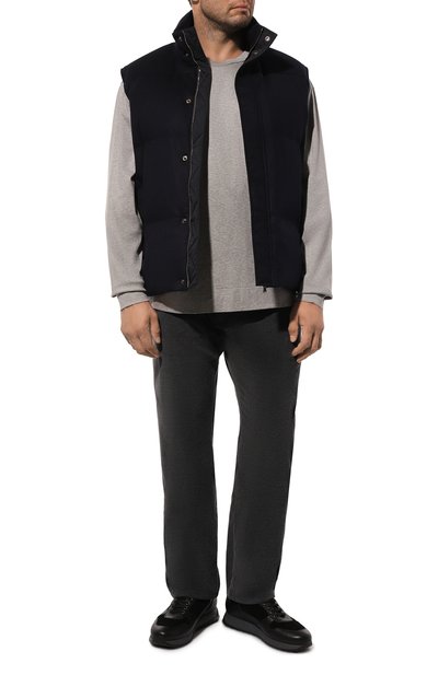 Брюки с пятью карманами украсили брендированным патчем на поясе сзади. Для пошива модели использовали эластичный твил на основе шерсти и органического хлопка.