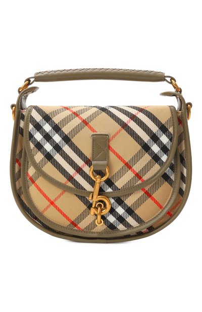 Сумка B Clip обязана своим названием карабином в форме литеры B на наружном кармане. Аксессуар из водоотталкивающей ткани в клетку Burberry Check отделали контрастной телячьей кожей, предусмотрев внутри плоский слот. Ручку с крестообразными стежками продублировали съемным регулируемым ремнем.
