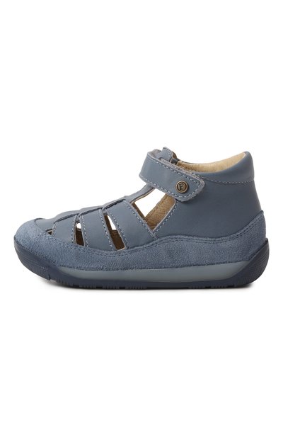 Сандалии Wunny изготовили из гладкой кожи с принтом в виде динозавров. Пару на гибкой резиновой подошве с анатомической стелькой и двумя регулируемыми ремешками велкро украсили брендированной накладкой на заднике.