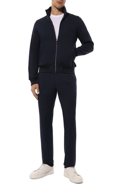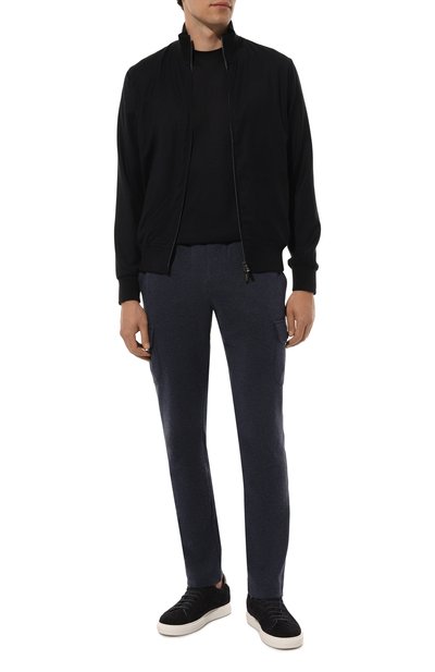 Толстовку с внутренним и внешними боковыми карманами дополнили высокой горловино й, манжетами и поясом из трикотажа в рубчик. Модель из шерстяной ткани с добавлением шелка и льна застегивается встречной молнией.
