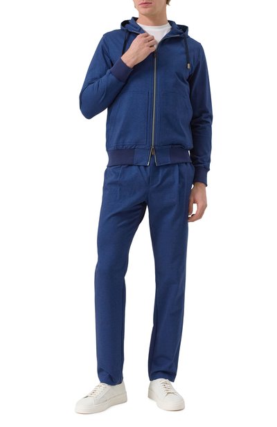 Для изготовления толстовки на встречной молнии использовали джерси с шевронным мотивом, связанное из хлопка Supima. Модель с двумя боковыми карманами дополнили регулируемым капюшоном.