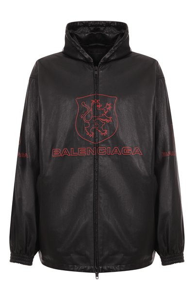 Oversize-куртку с капюшоном, боковыми и внутренним карманами выполнили из тонкой кожи. Модель с сетчатым подкладом декорировали спереди, на рукавах и спинке вышитым мотивом Lion Club с логотипом марки.