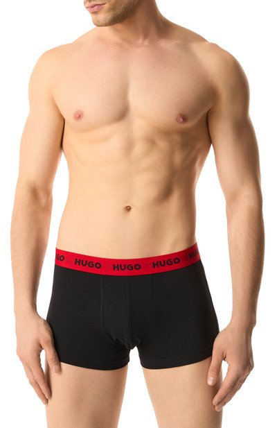 Боксеры из хлопкового трикотажа дополнили поясом из стрейчевой ленты с жаккардовыми логотипом и фирменным смайлом. В комплекте — еще две аналогичные модели базовых оттенков.