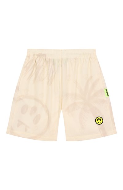 Шорты с брендированным принтом на пару тонов темнее выполнили из чистого хлопка. Модель с эластичным поясом и двумя карманами украсили фирменным смайлом спереди и брендированным ярлыком в боковом шве.