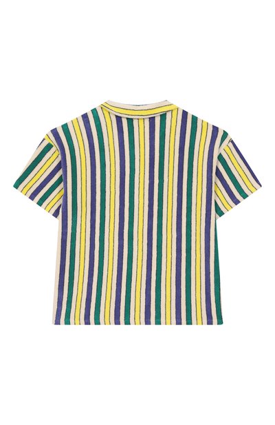 Рубашку выполнили из хлопка с принтом в виде множества фирменных эмодзи. Модель дополнили нагрудным накладным карманом с брендированным ярлыком сбоку.