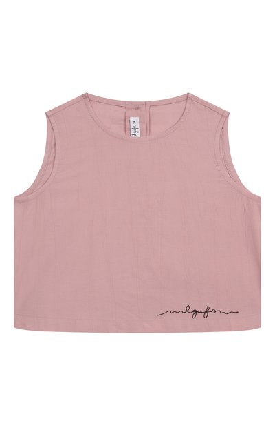 Комплект выполнили из хлопковой ткани с брендированным принтом Polka Dot, поверх которого изобразили гусей. Кроп-топ застегивается четырьмя пуговицами спереди, а шорты с двумя боковыми карманами и эластичным поясом обходятся без застежки.