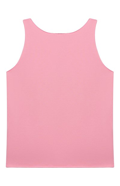 Для изготовления майки использовали ребристый хлопковый трикотаж с добавлением лиоцелла и эластана. Спереди модель украсили контрастным вышитым логотипом марки.