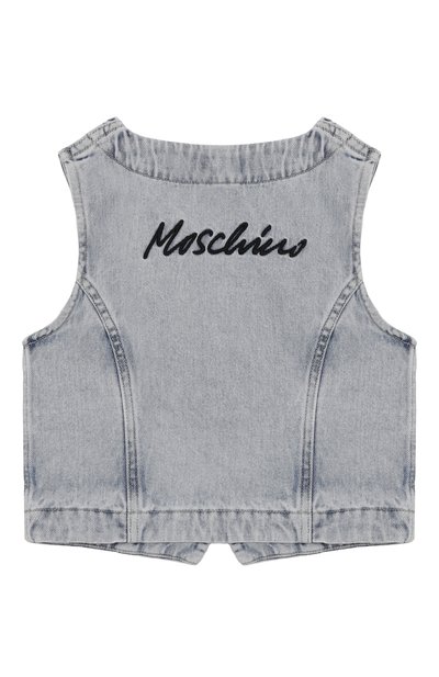 Джинсовый жилет с V-образным вырезом сшит из облегченного хлопкового денима. Модель с брендированной застежкой украшена цветочной вышивкой спереди и логотипом марки сзади.