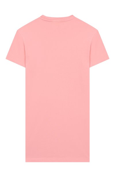 Платье-футболку прямого кроя сшили из хлопкового джерси. Модель с круглым вырезом и защипами на спинке украсили фирменным принтом Teddy Bear с отделкой пайетками.