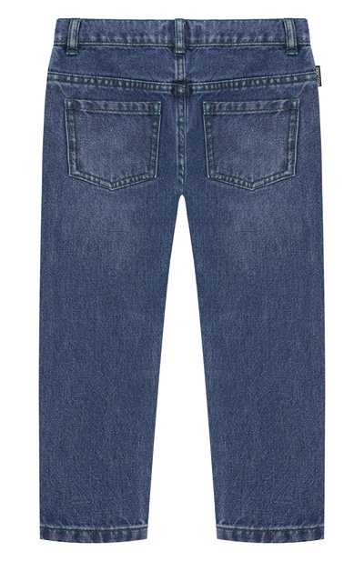 Джинсы с эластичной вставкой на поясе сшили из чистого хлопка, дополнив потертостями и разрывами. Помимо трех боковых карманов у модели предусмотрели задние и украсили один из них изображением фирменного медвежонка Teddy Bear.