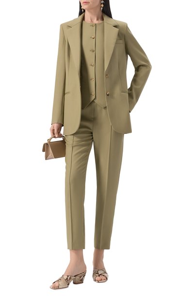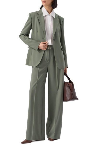 Однобортный жакет с прямоугольными лацканами, тремя карманами и атласным подкладом будет уместен и в деловых, и в повседневных образах. Модель из чистого хлопка застегивается обтяжной пуговицей.
