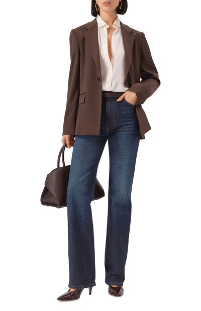 Прозрачная блуза с аппликацией Flora станет акцентом в образе с кроп-топом и миди-юбкой. Модель на потайных перламутровых пуговицах сшили из тонкого шелка Crispy. Изделие с закругленной линией низа и чуть спущенными плечами дополнили бантовой складкой на спинке.