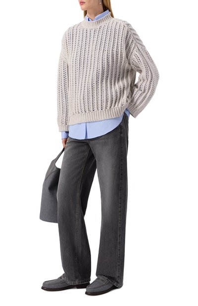 Кожаные пенни-лоферы украсили цепочками мониль на перемычке и тисненым логотипом на замшевой стельке. Задник модели на квадратном каблуке заменили ремешком с прямоугольной пряжкой.