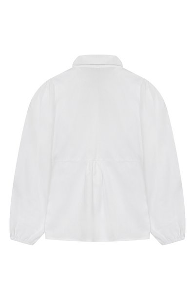 Рубашку в вертикальную полоску изготовили из хлопкового поплина с добавлением шелка, дополнив однотонным воротником. Модель с серебристой эмблемой Solomeo, вышитой на нагрудном кармане, застегивается пуговицами из перламутра.