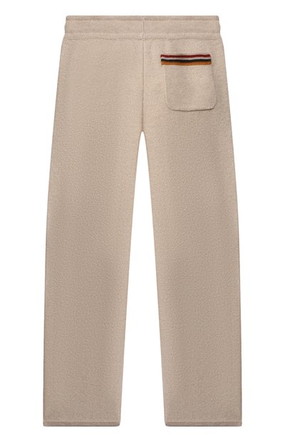 Для пошива брюк с эластичным поясом-кулиской и блестящей пряжкой использовали микс льна и вискозы. Модель с имитацией ширинки дополнили пятью карманами, укрепив монетный брендированной заклепкой.