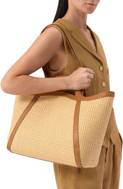 Сумку Amalia с двумя парами ручек разной длины выполнили из зернистой кожи, которая легко очищается от загрязнений. Форму аксессуара с застежкой на магнитную кнопку можно менять при помощи ремешков с карабином. Внутри – карман с молнией.