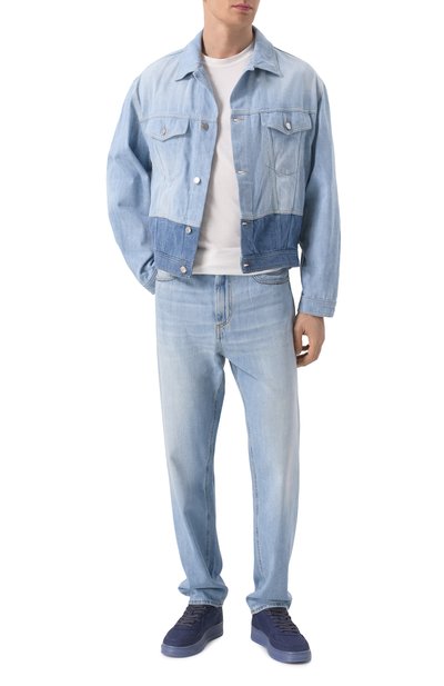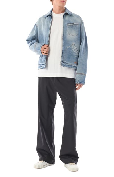 Куртку с боковыми ремешками и брендированным патчем на поясе сзади выполнили из хлопкового денима с добавлением лиоцелла. Модель дополнили двумя парами карманов.