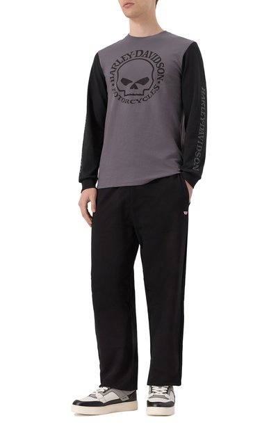 Для изготовления слегка удлиненного лонгслива использовали неравномерно окрашенный льняной трикотаж. Изделие с закругленным низом застегивается брендированными пуговицами в тон.