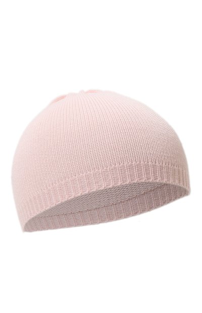 Шапку с ребристой ма нжетой выполнили из мягкого хлопка. Из него же связали пинетки, включенные в комплект, которые украсили аппликациями с бантами.