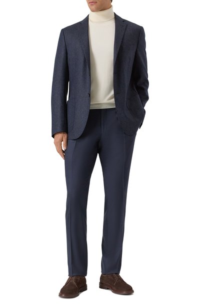 Пиджак Kei с двумя шлицами сзади выполнили из шерсти с меланжевым узором. Модель с полуподкладом в тон дополнили внутренним и тремя внешними карманами.