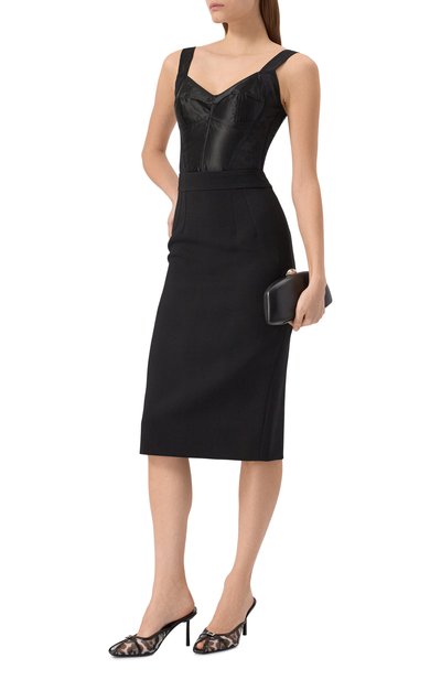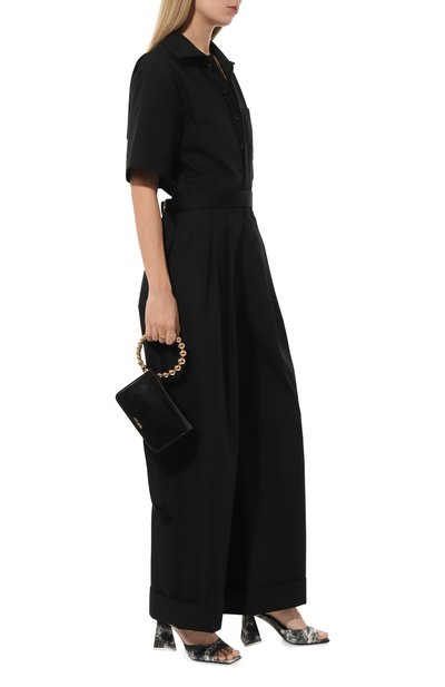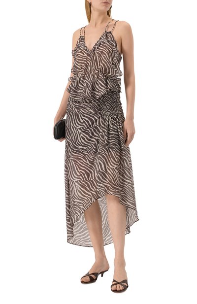 Мюли с открытым мысом сшили из кожи с принтом под рептилию. Модель с фирменным стеганым узором на стельке поставили на скошенный каблук средней высоты.