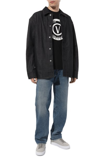Кеды T-switch из зернистой матовой кожи дополнили сменными язычками, которые фиксируются ремешком с пряжками. Съемные детали украсили тисненым названием пары, повторив его на резиновой подошве.