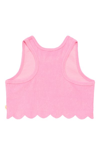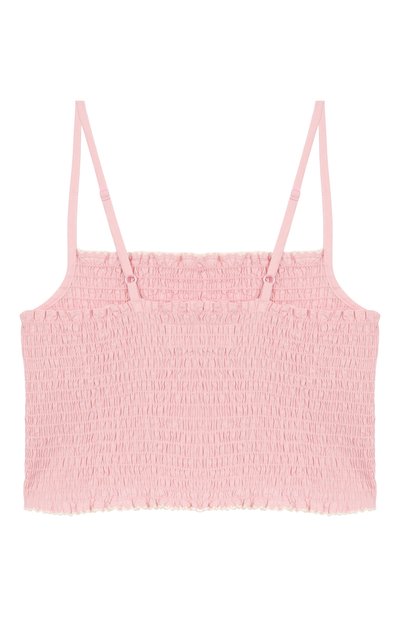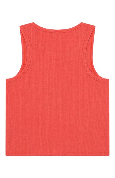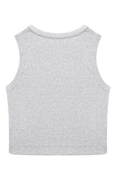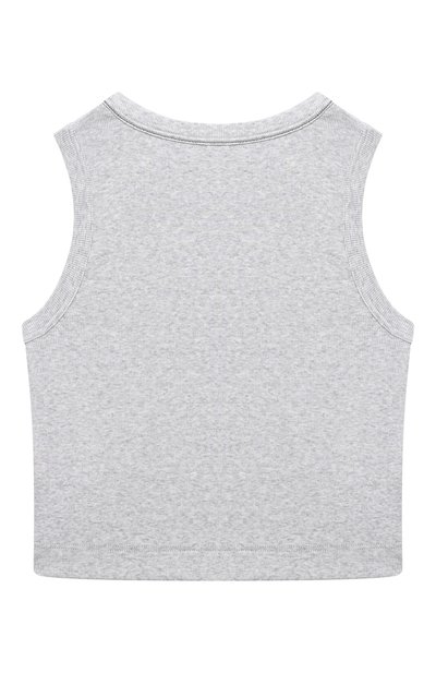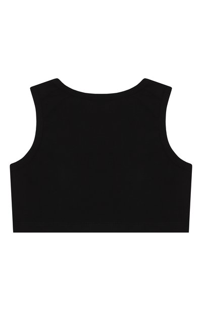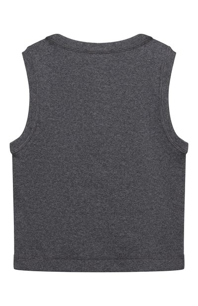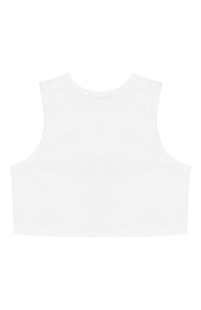 Кроп-топ с круглым вырезом и глубокими проймами выполнили из хлопкового трикотажа. Спереди модель украсили логотипом в тон, а на спинке – брендированным патчем с тиснением.