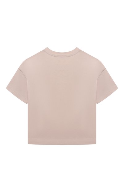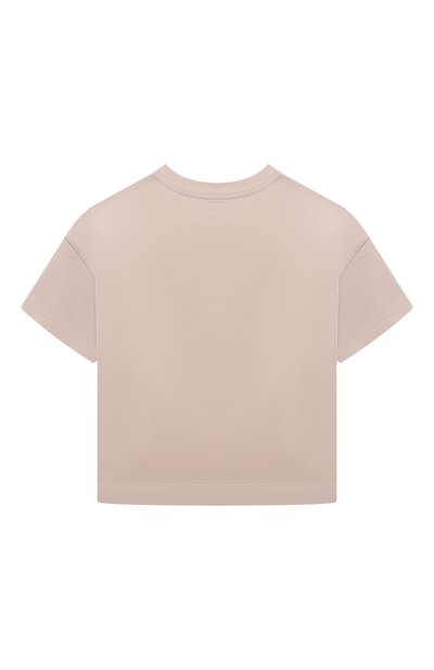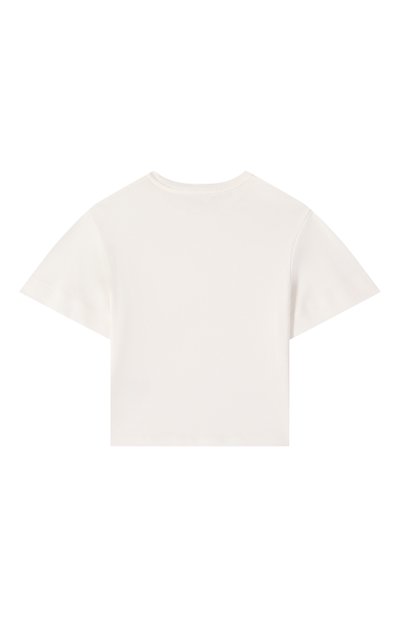 Футболку с рифленой горловиной выполнили из хлопкового джерси. Перед и рукава модели украсили ромбовидным брендированным паттерном, выложенным кристаллами.